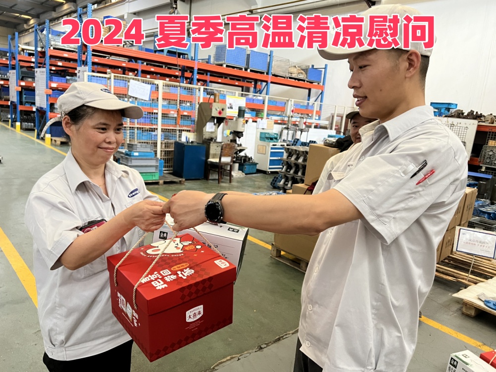 8月8日下午,繼上次“夏日清涼”活動(dòng)之后,恒立氣動(dòng)公司由總經(jīng)理王新中、管理部經(jīng)理蔣玉嬌帶隊(duì),再次向基層員工發(fā)放了高溫慰問禮盒,借此向各堅(jiān)持在生產(chǎn)一線的員工們表達(dá)深切的慰問!